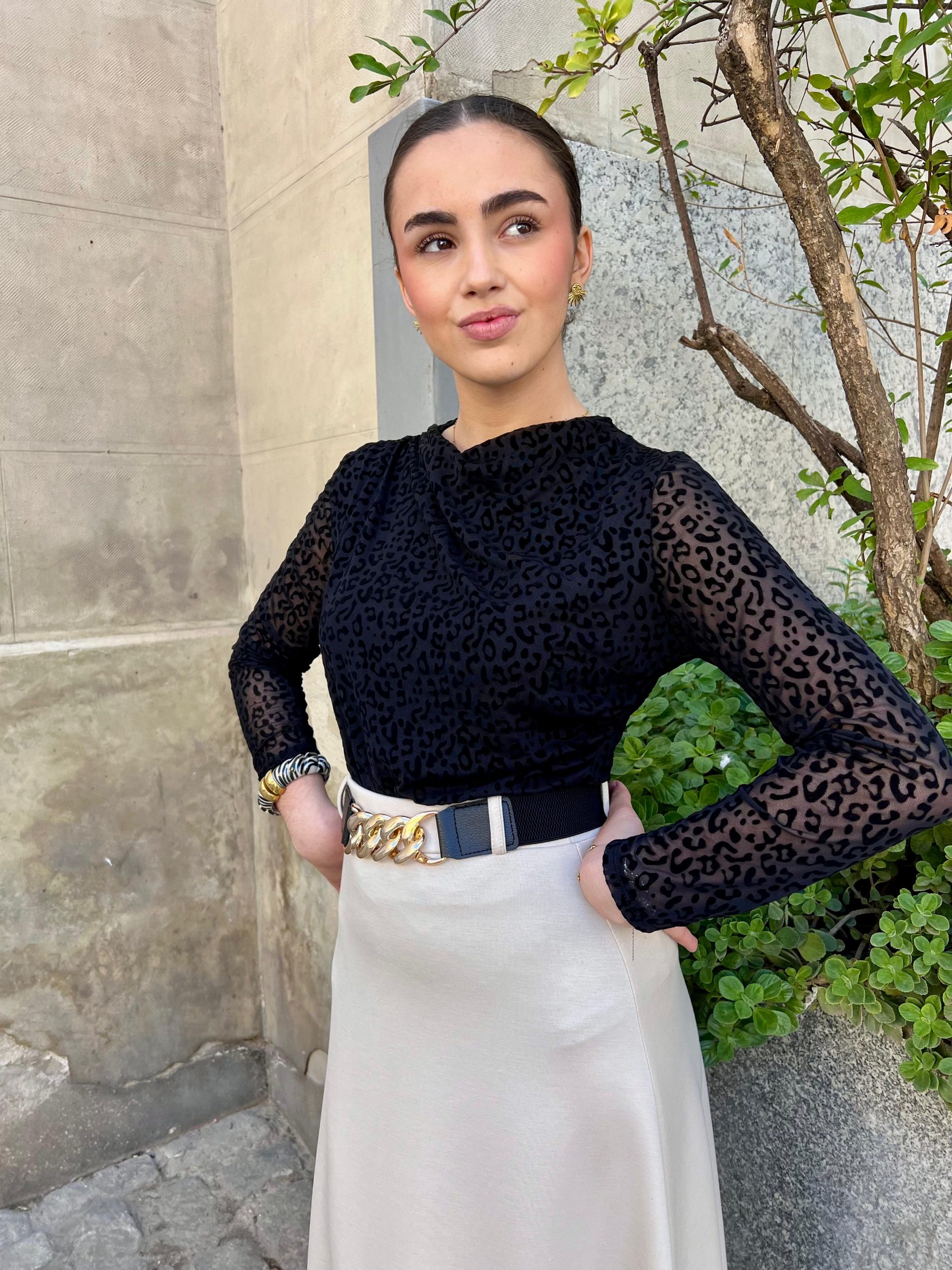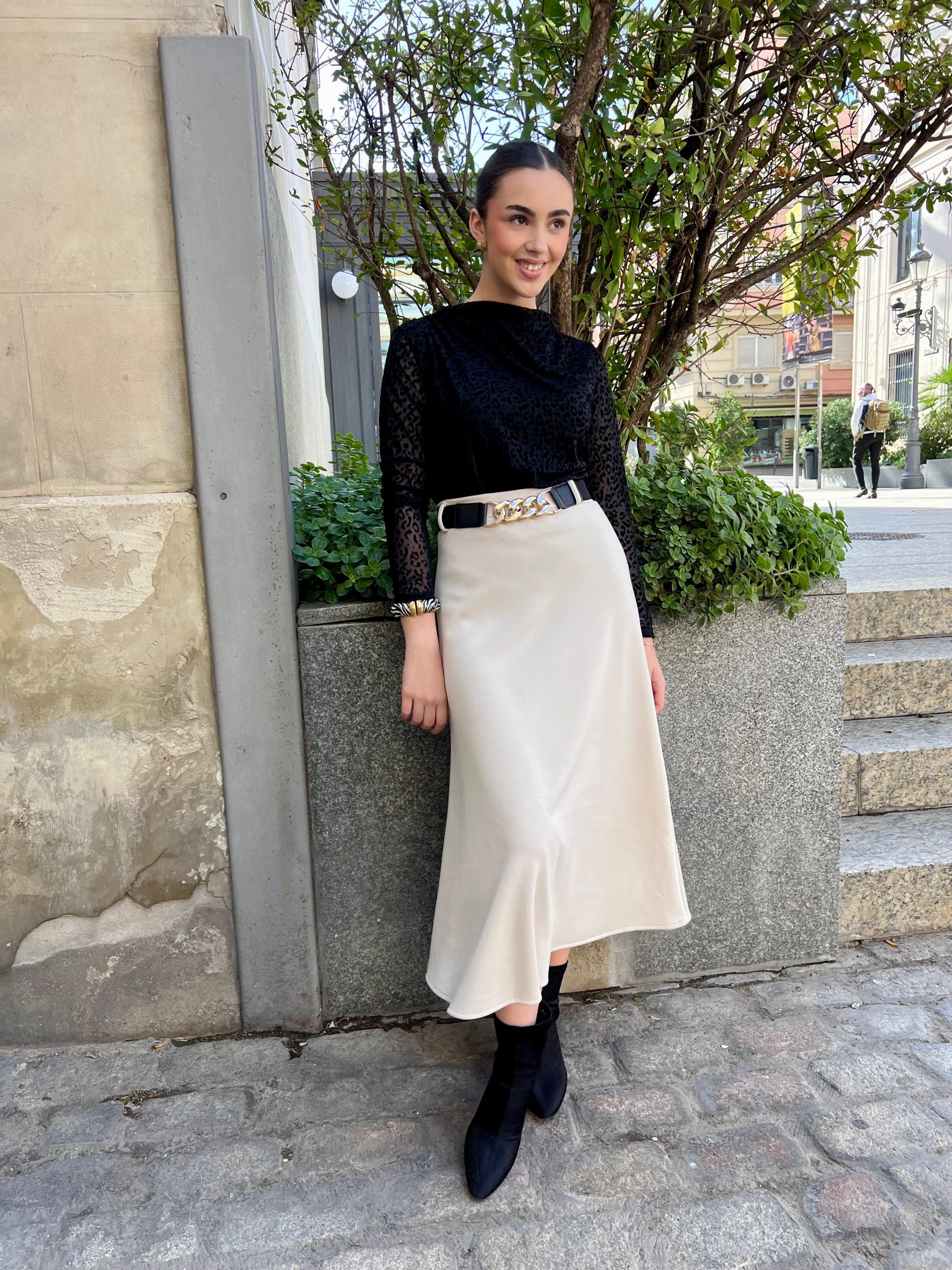 Falda algodón + cinturón – Beige (Ref:43118)