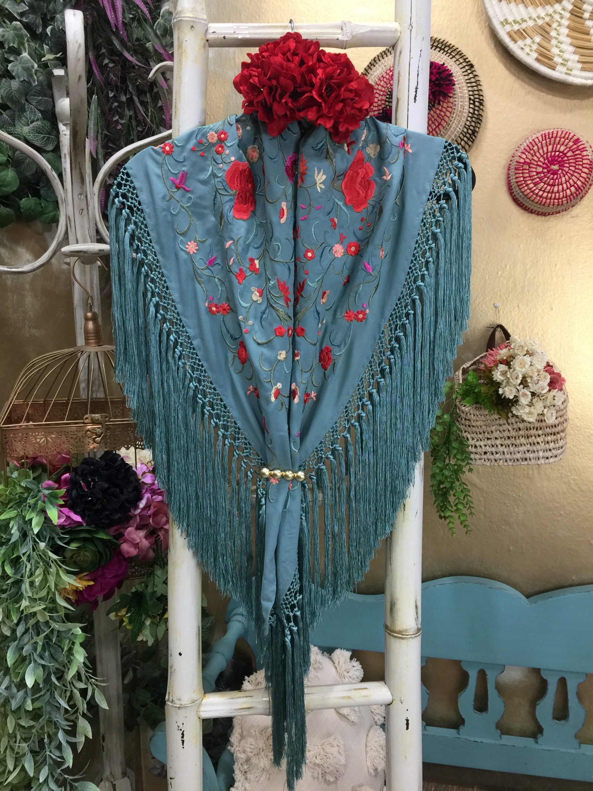 Mantoncillo bordado multi – Azul-Verdoso (Ref:43755)