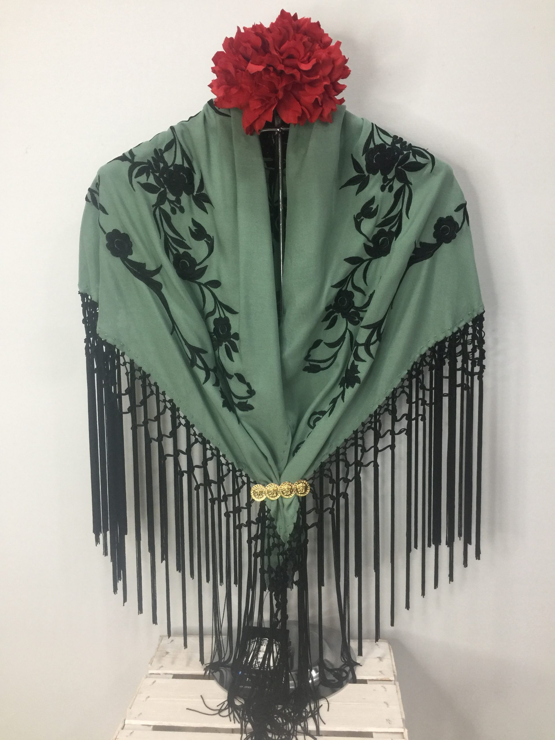 Mantoncillo Nacional adulto – Verde Savia bordado negro(Ref:34644)