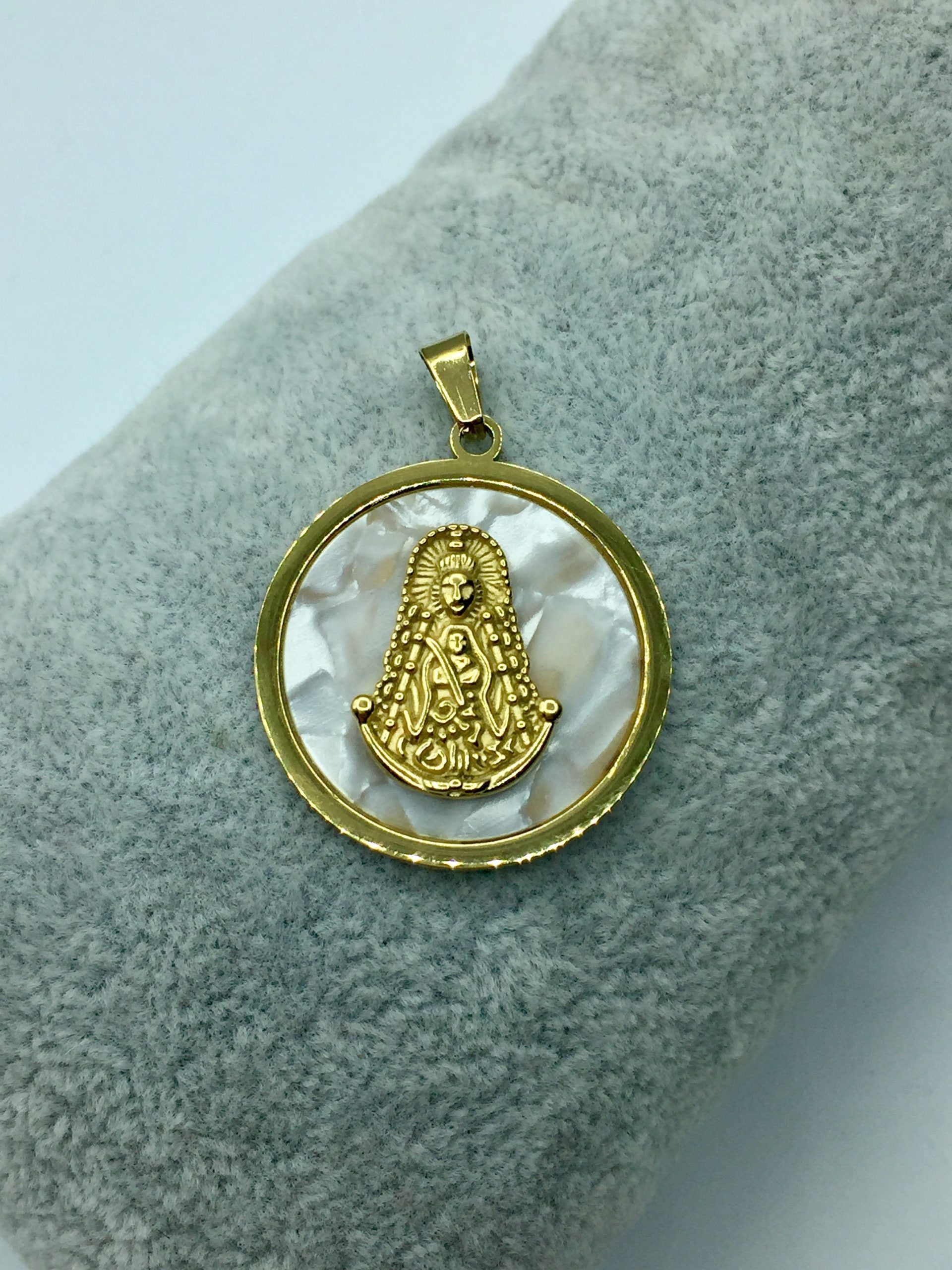 Medalla Virgen del Rocío nácar 3cm – acero (Ref:433089