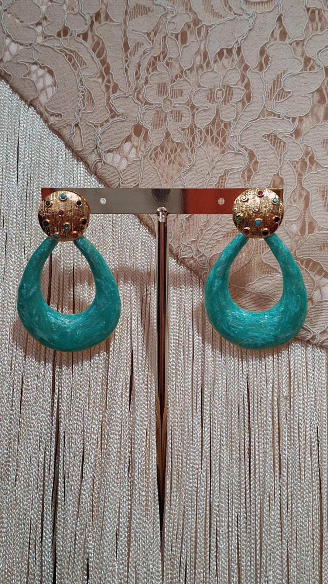 Pendiente esmaltado ovalado -Verde agua (Ref:35039)