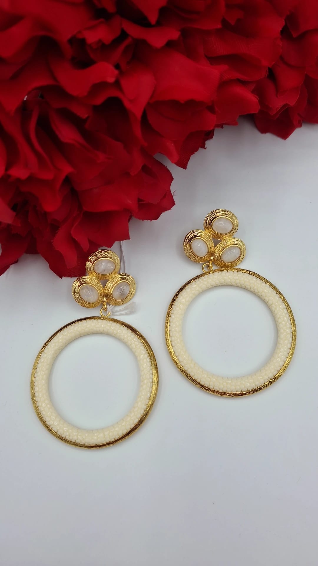 Pendiente Turco beige – piedra luna (Ref:35037)