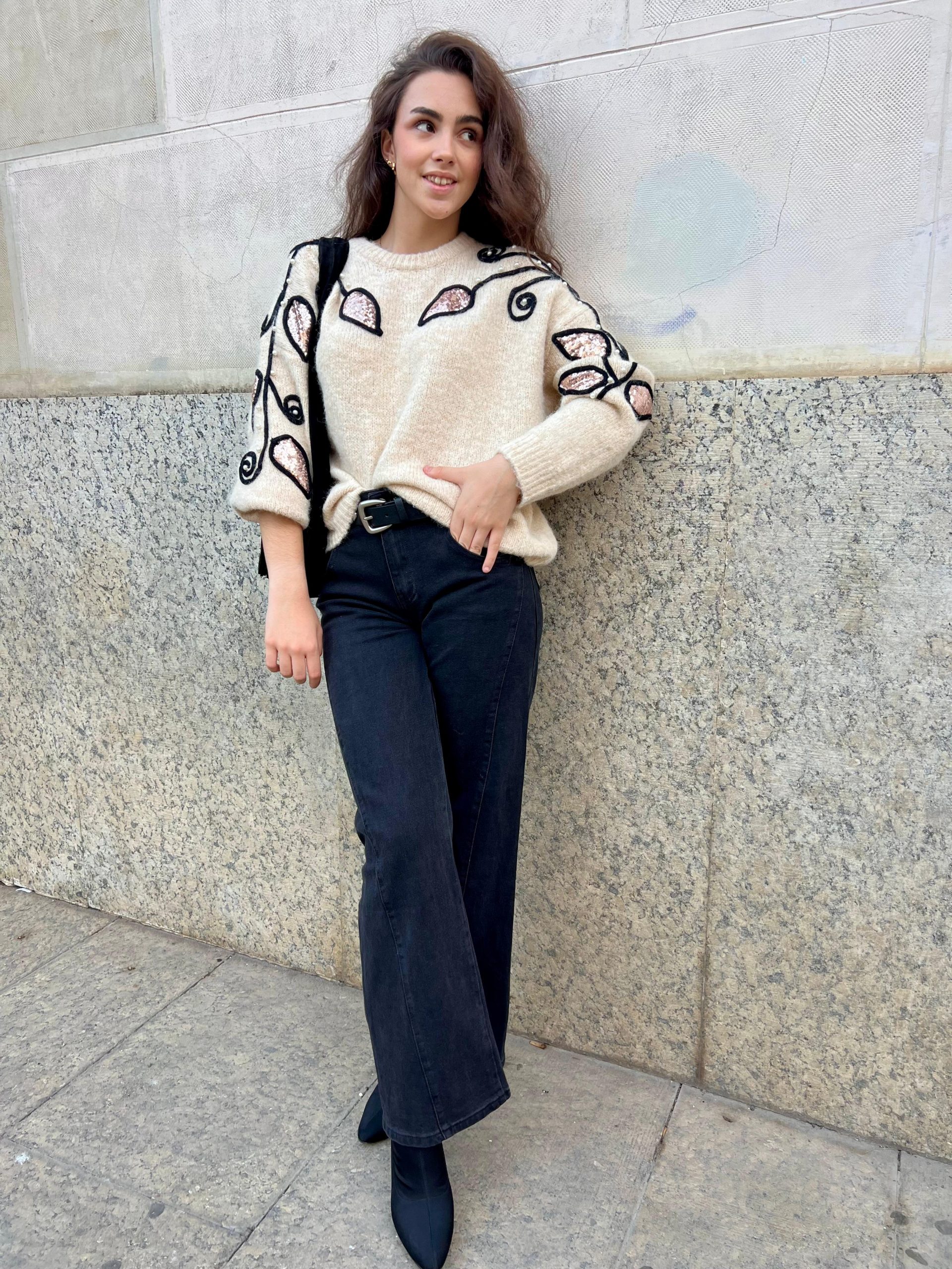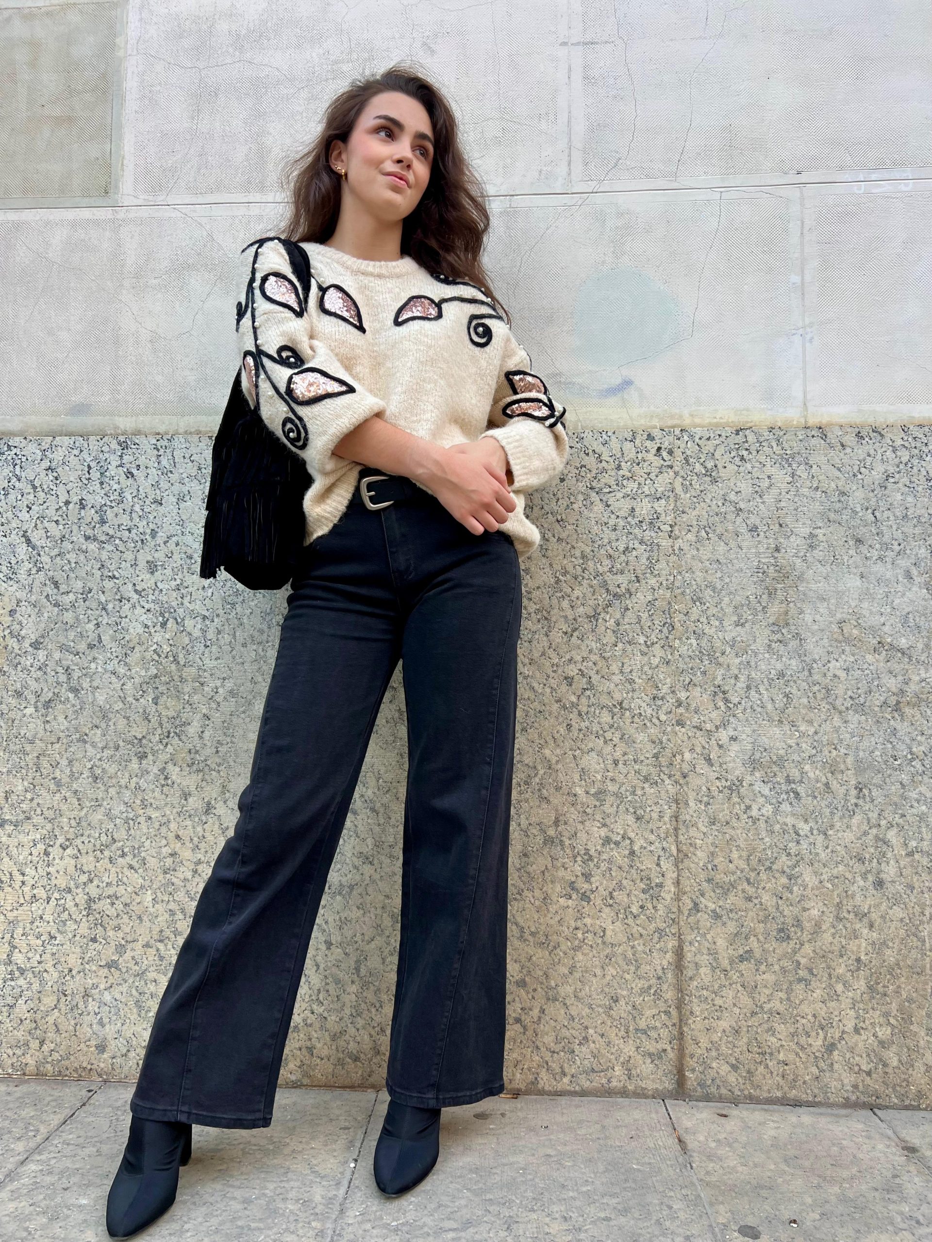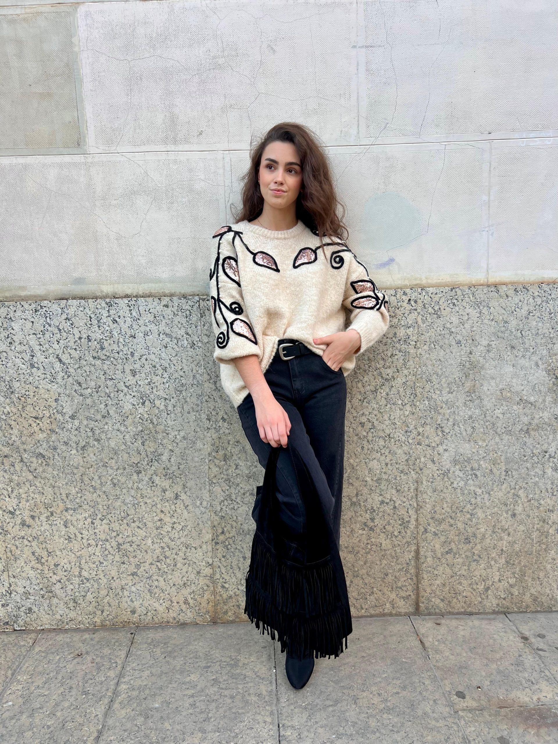 La modelo usa talla 36 y el pantalón es talla 40
